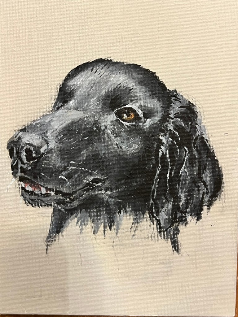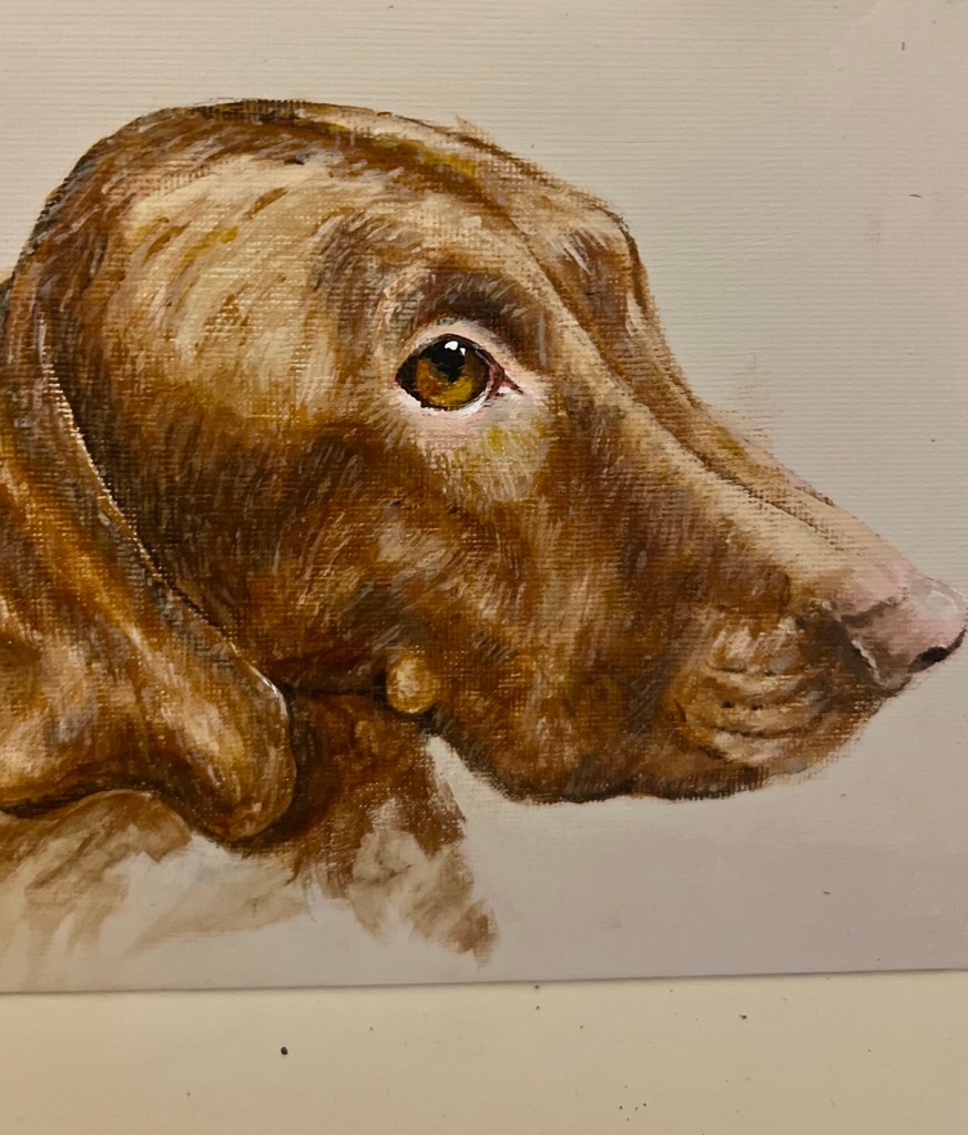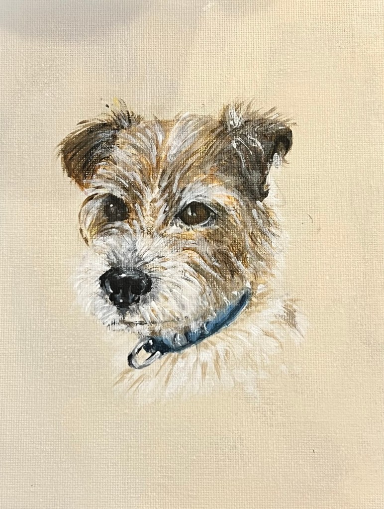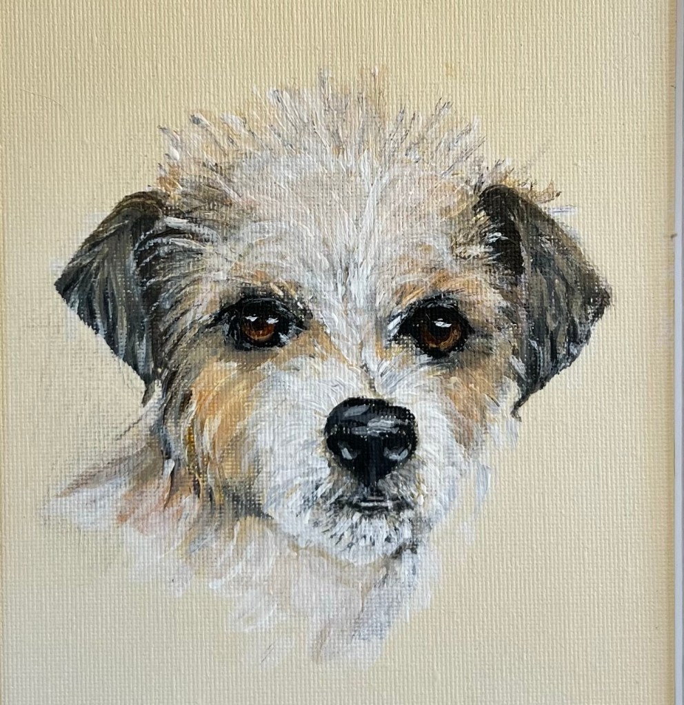 Your pet’s portait is painted from an agreed reference photograph in acrylic on board (6”x8”) and beautifully presented mounted and framed.